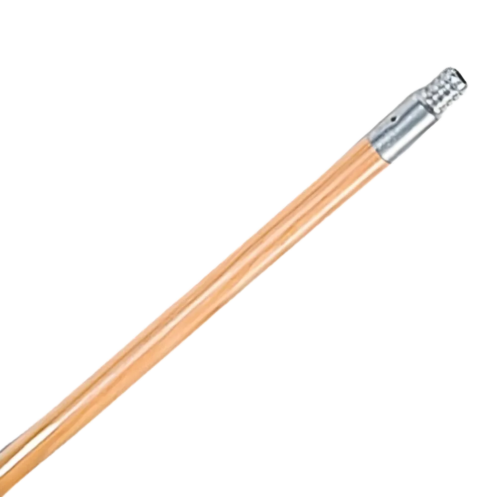 Bastón de madera de pino de 15/16 (2.38 cm) de diámetro por 1.50 m de longitud, con punta metálica roscada de. El mayor diámetro lo hace más resistente a trabajos pesados y la longitud de 1.50 m es ideal para evitar que el usuario tenga que inclinarse para barrer; esto resulta en menor fatiga, mayor rendimiento.