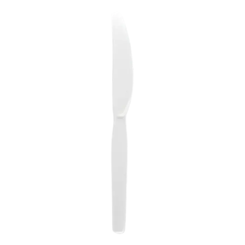 Cubierto desechable de polipropileno o poliestireno de grado alimenticio, longitud aproximada de 16–20 cm. Presentaciones disponibles desde 100 hasta 1,000 unidades, en color blanco. Ideal para eventos, servicio rápido o comida para llevar. Ligero, resistente y libre de BPA.