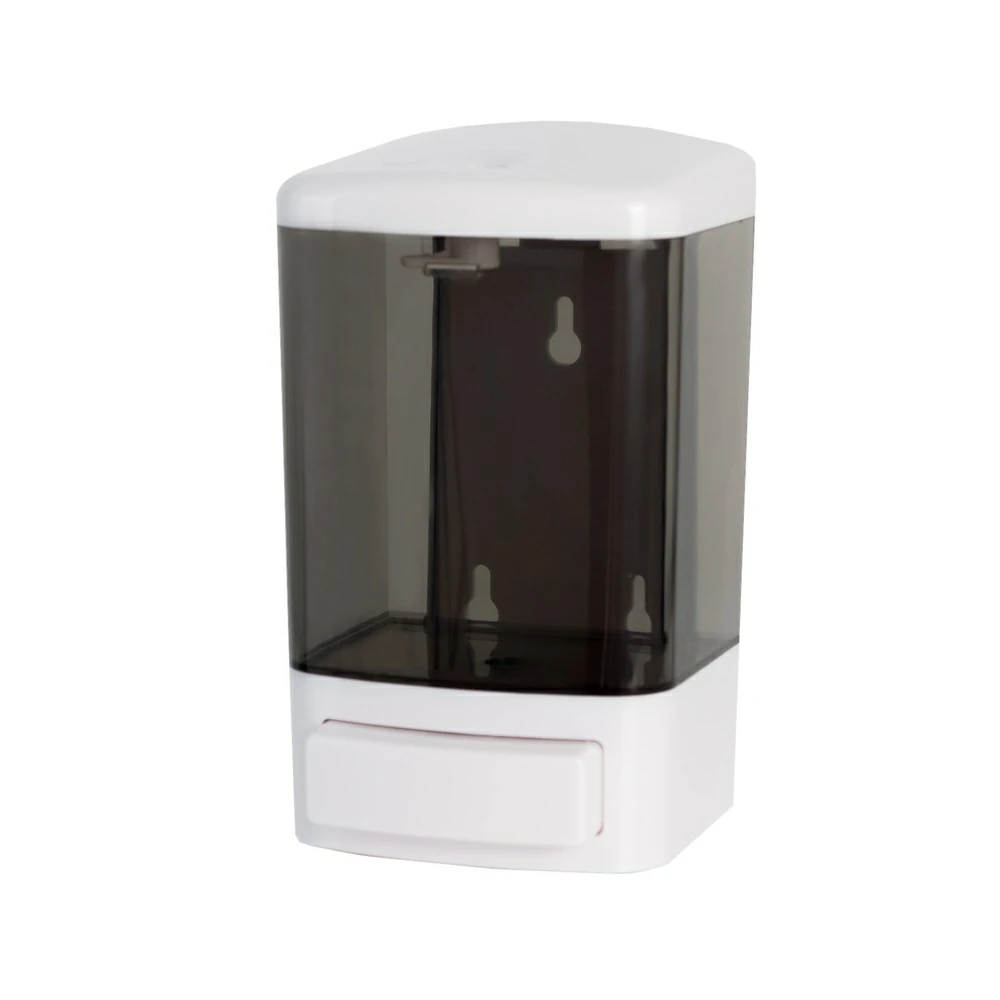 El dispensador manual de jabón a granel SD0927 está fabricado con plástico resistente a impactos y es muy duradero. Admite una variedad de jabones líquidos y en loción. No se puede usar con jabones de piedra pómez. Su diseño translúcido permite ver fácilmente el jabón. La parte superior lisa y curva es resistente al agua, mientras que la amplia barra de empuje cumple con los requisitos de la ADA.