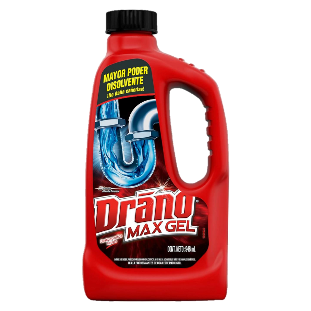 La fórmula con cloro espeso del Drano® Max Gel atraviesa el agua estancada. Funciona muy bien para eliminar el vello, la espuma del jabón y otras cañerías de mal olor. Úselo en la bañera, lavabo, lavabo de cocina y triturador de residuos. Atraviesa el agua estancada. Funciona en 15 minutos y Tiene un ingrediente para proteger las cañerías contra la corrosión, además puede dejarse en el desagüe toda la noche. Contiene una fórmula que dejará tus lavabos, desagües y tuberías impecables y sin residuos desagradables. Además tiene un poder disolvente que reacciona al contacto con el material de obstrucción y lo desintegra, previniendo así la acumulación sin dañar la cañería.