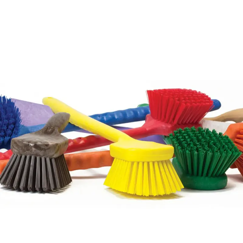 Fabricadas con block de plástico estructural y fibra de PBT de rigidez media, de 1 ¾” (4.44 cm) de longitud y calibre 0.019”. Estos cepillos son muy populares en la industria alimenticia para tallar y lavar contenedores de plástico, marmitas, sartenes y otros utensilios de cocina.