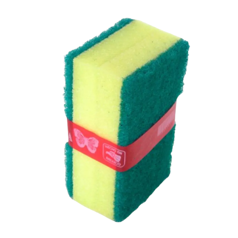 La fibra verde tiene una abrasión media, ideal para despegar restos de comida y remover manchas difíciles, mientras que la esponja tiene una abrasión ligera que no daña ni las superficies más delicadas.