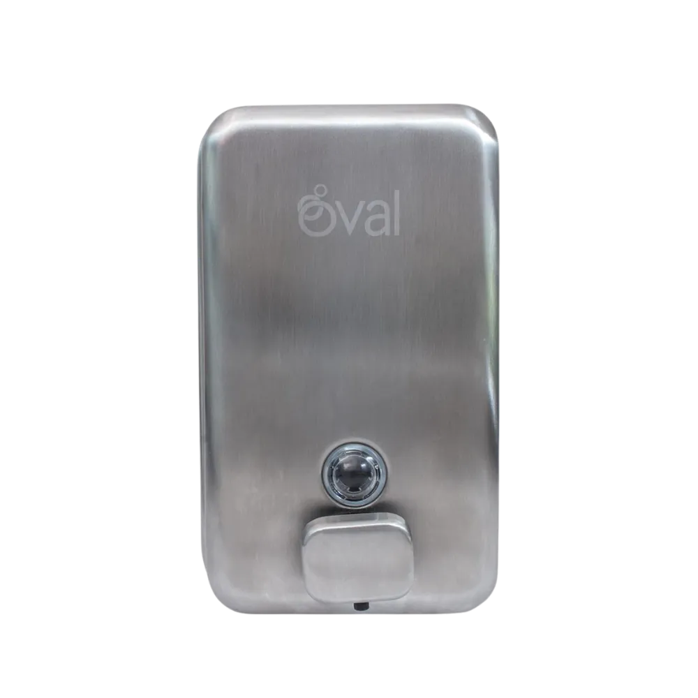 Es un dispensador de jabón líquido a granel con capacidad de 1 litro. Está fabricado en acero inoxidable de muy alta resistencia al impacto y a la corrosión. Esta jabonera puede dosificar cualquier tipo o marca de jabón líquido para manos a granel. Su válvula dosificadora es metálica, muy confiable y durable. Dosifica aproximadamente 1 ml al activar el botón. Es completamente manual por lo que no utiliza pilas. La jabonera puede ser desmontada de su base para su limpieza retirando un tornillo. En la parte superior se encuentra la abertura para el rellenado de jabón que cuenta con tapa, cerradura y llave.
