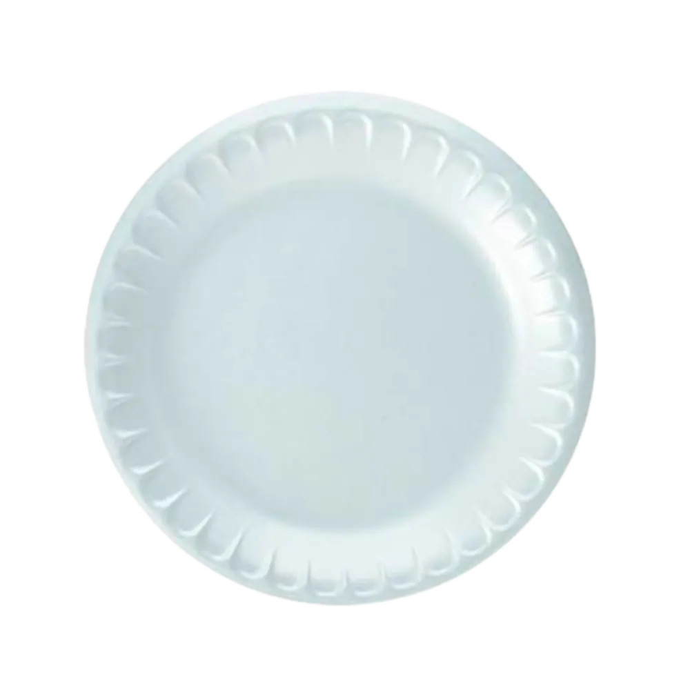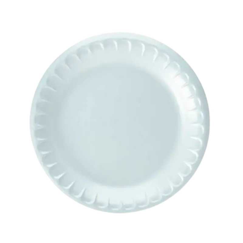 Plato desechable térmico tipo foam de alta resistencia, ideal para servir pastel o postres. Tamaño perfecto para porciones individuales, ligero, firme y práctico. Disponible en versión reciclable o biodegradable.