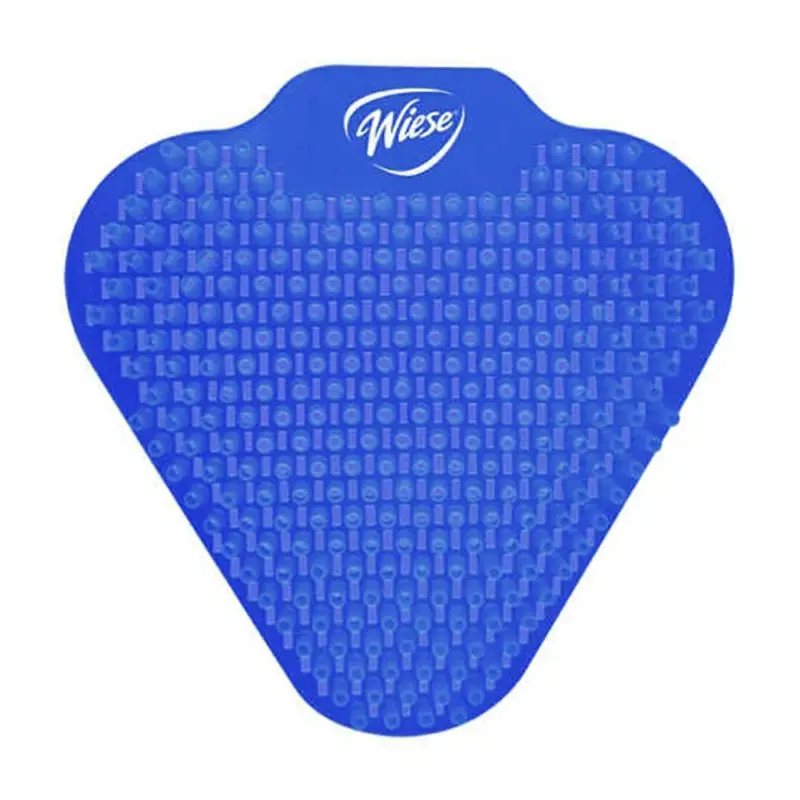 Tapete antisalpicadura con fragancia continua. Diseño triangular que evita el paso de objetos al drenaje. Ideal para baños públicos.