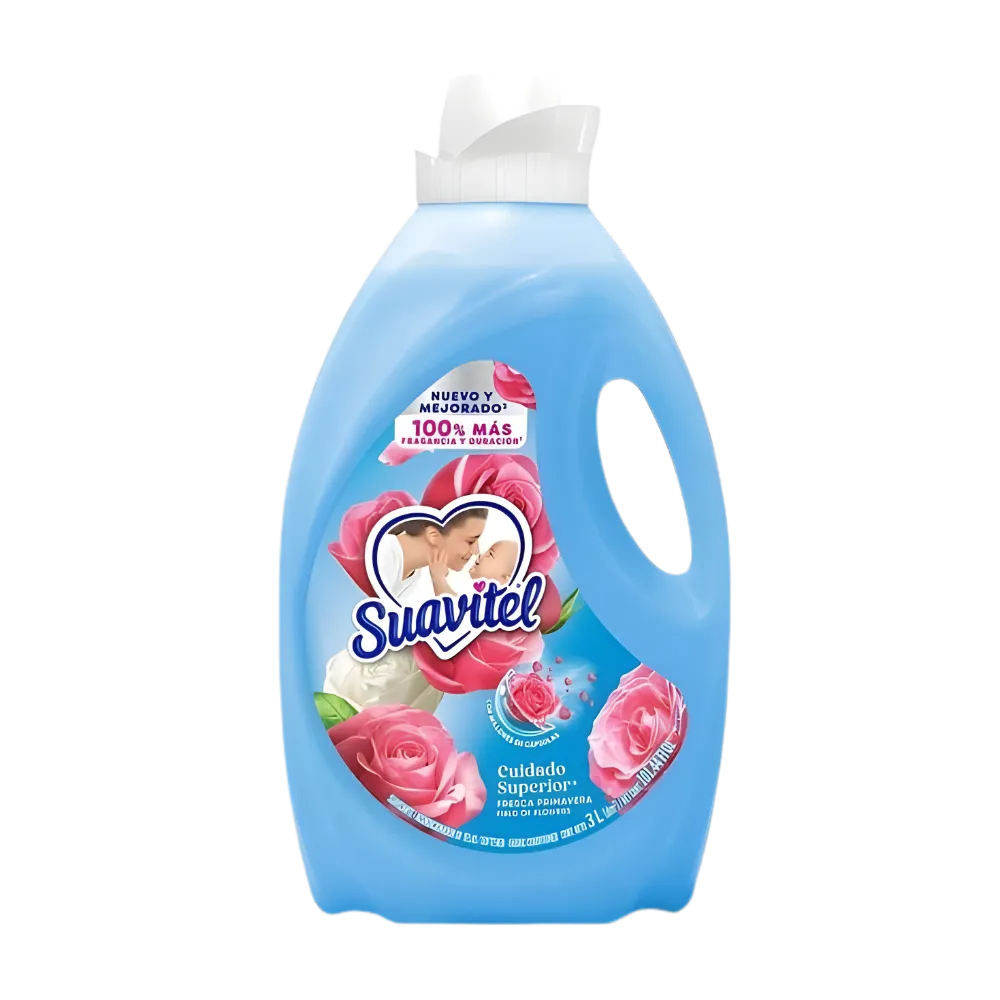 Disfruta de 100% más fragancia y duración con el suavizante de telas Suavitel Fresca Primavera. Brinda un extra aroma hasta por 90 días, neutralizando malos olores y protegiendo las fibras de tu ropa