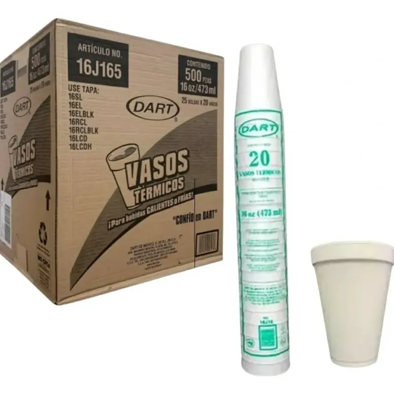 Vaso Unicel Térmico 16 Oz 500 Piezas Blanco
