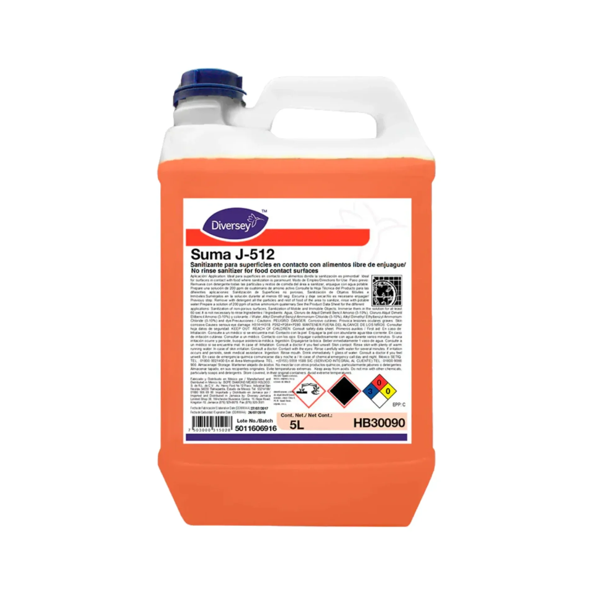 Optimiza la higiene y ahorra tiempo en tu cocina con Suma J-512 de Diversey, el sanitizante sin enjuague para superficies en contacto con alimentos. Su fórmula avanzada y amigable con el medio ambiente te permite sanitizar equipos y utensilios de manera rápida y eficaz. Simplemente aplica el producto por aspersión o inmersión, deja escurrir y secar al aire libre, sin necesidad de un paso de enjuague posterior. Es la solución ideal para un proceso de sanitización eficiente y seguro.