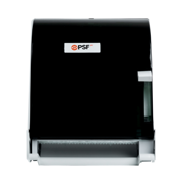 Despachador para toalla en rollo con sistema de palanca, diseñado para ofrecer dispensación controlada e higiénica en baños de alto tráfico. Fabricado en plástico resistente color negro, permite extraer la cantidad necesaria de papel con facilidad, ayudando a reducir el desperdicio y mantener el área ordenada.