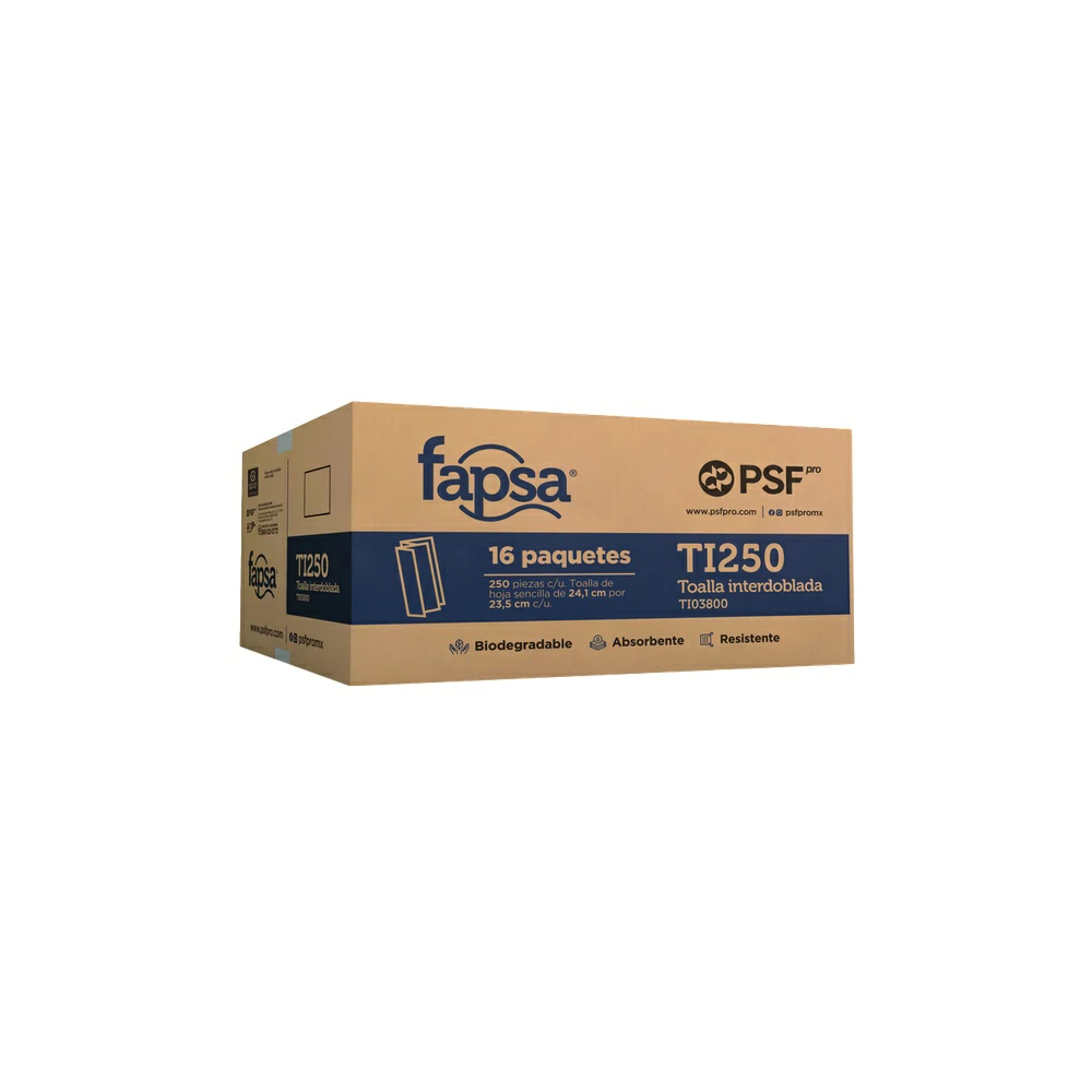Toalla de papel interdoblada, hoja sencilla, ideal para dispensadores en baños públicos. Presentación de 3,000 piezas.