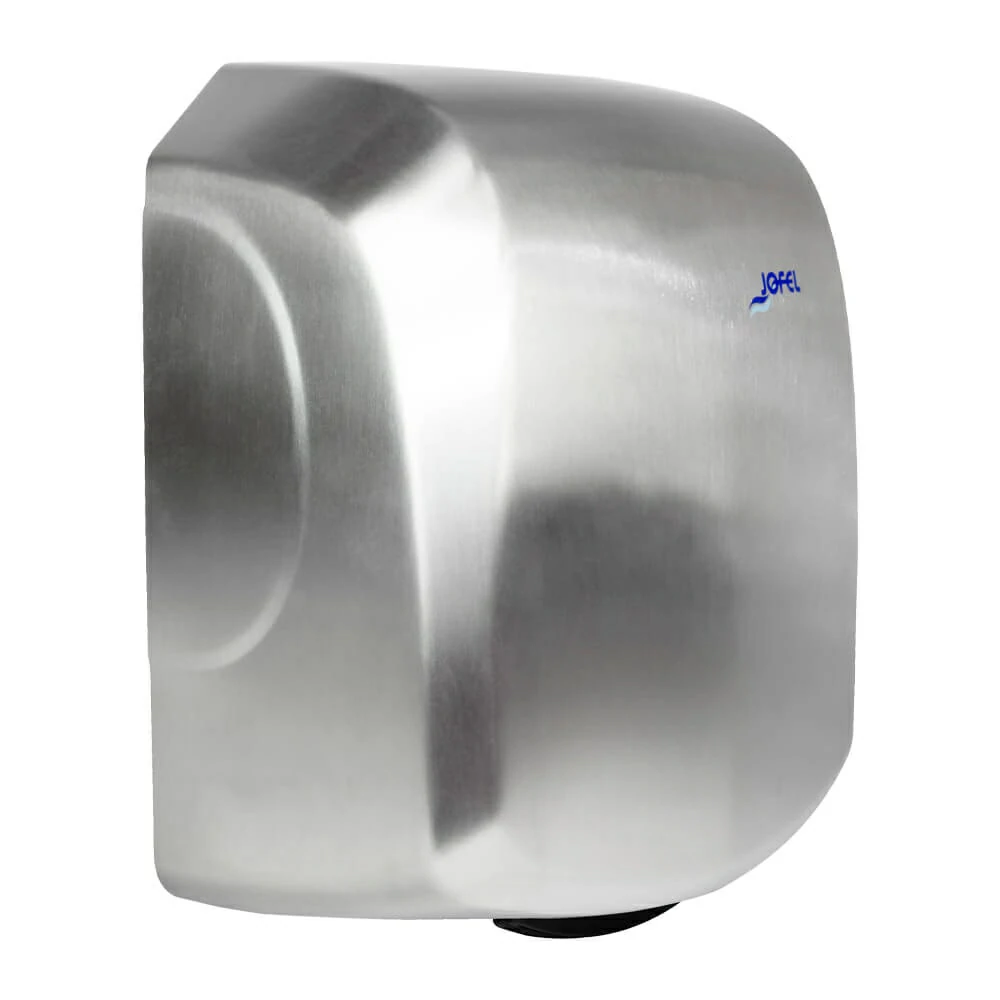 Fabricado en acero Inox y componentes internos de ABS+PC. Se acciona aproximando las manos al sensor que se encuentra en la rejilla (parte inferior) que genera una descarga de aire caliente hasta retirar las manos.