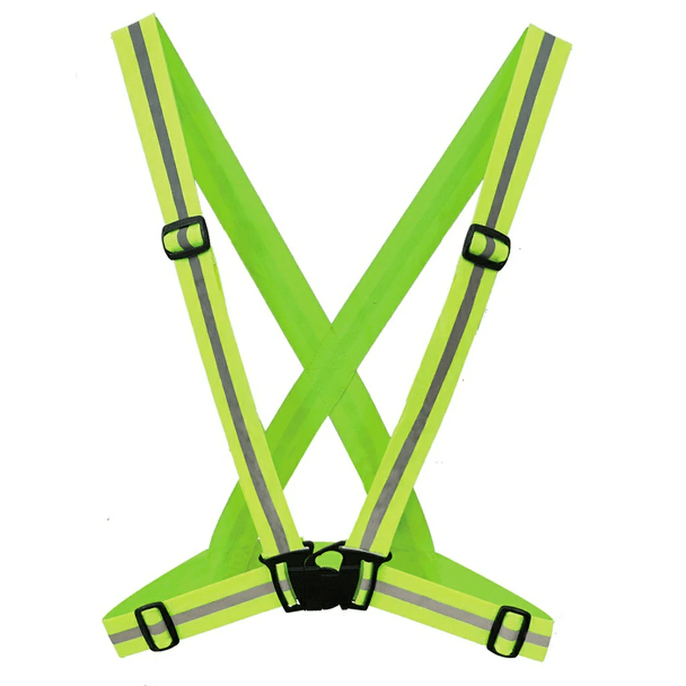 Chaleco verde carrillero elástico y ajustable de alta visibilidad.