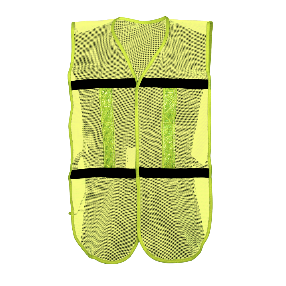 Chaleco de malla con bies de alta visibilidad, Fabricado en malla de punto abierto, con recubrimiento plástico, Reflejante térmico 100% PVC color amarillo de 1 3/8” con microesferas encapsuladas, resistente a los cambios de temperatura, La “X” en la espalda es un nuevo código visual que significa “ALERTA”, y sirve para identificar a un trabajador caído en un intento de escapar por falta deoxÍgeno ​​o envenenamiento por gases. Identificar en zonas oscuras si el trabajador está de frente o de espalda, Resistente al sol, Alta resistencia al rasgado.