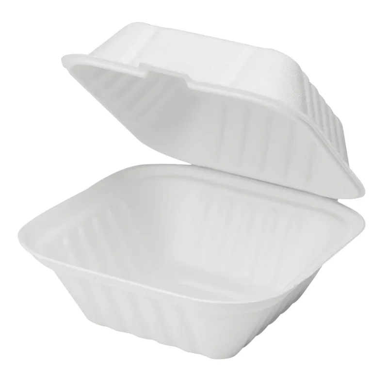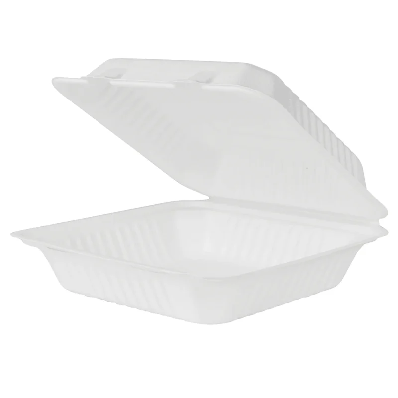 Los contenedores con bisagra de bagazo Karat Earth® son la alternativa ecológica perfecta a los contenedores con bisagra de poliestireno o plástico. El bagazo se elabora a partir de fibras de caña de azúcar que quedan después de la extracción del azúcar. Estas fibras son resistentes y duraderas, lo que las convierte en un excelente material sostenible para el envasado de alimentos compostable. Estos contenedores con bisagra de bagazo no contienen PFAS, lo que elimina el riesgo de que estos químicos se filtren en los alimentos y ofrecen una alternativa más segura y sostenible a las opciones de envasado tradicionales.