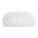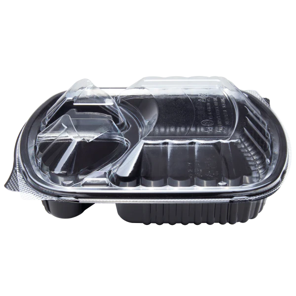 Las tapas Karat OPS están diseñadas para usarse con la caja negra de PP para microondas de 36 oz y 3 compartimentos. ¡La tapa Karat OPS combina a la perfección con la caja negra de PP para microondas de 36 oz y 3 compartimentos! Cada tapa OPS tiene una tolerancia de temperatura de 0-90 °C (32-194 °F) y no es apta para microondas.