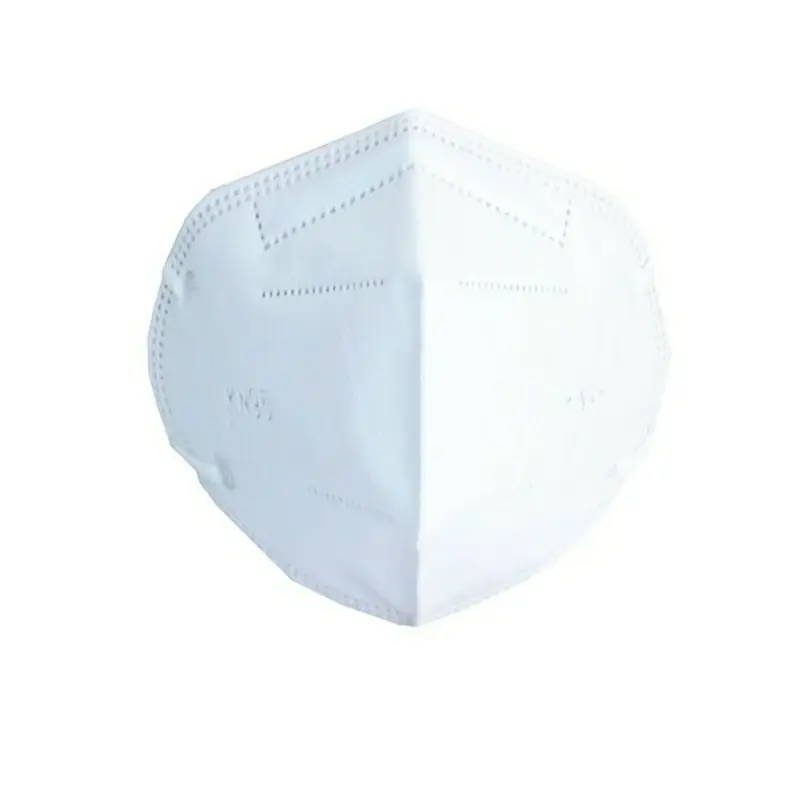 Respirador Desechable para Polvos y Neblinas KN95 Plegable marca LAMIRA, color blanco, 100% Polipropileno, 5 Capas protectoras para filtración múltiple, a prueba de gotículas, con ajustador nasal