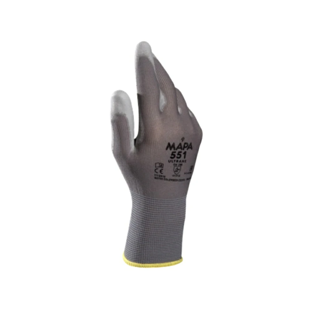 El mapa Ultrane 551 es un guante de protección de categoría 2, diseñado para trabajos de precisión en entornos secos o ligeramente grasos. Su recubrimiento de poliuretano en la palma proporciona un excelente agarre, mientras que su soporte textil sin costuras garantiza comodidad y transpirabilidad. Es libre de silicona y cumple con el estándar Oeko-Tex® Standard 100, lo que lo hace ideal para tareas que requieren alta destreza y contacto directo con piezas delicadas o componentes electrónicos.