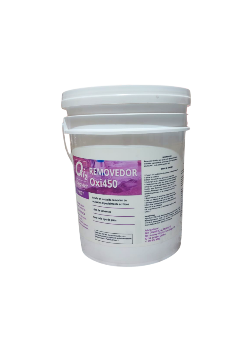El removedor de cera OXI450 de Oxigvivir en presentación cubeta de 18.9 litros es un producto formulado para eliminar de manera eficaz capas de cera, selladores y suciedad acumulada en pisos. Su acción química permite disolver residuos viejos y deteriorados, facilitando su remoción y preparando la superficie para la aplicación de nuevos recubrimientos.