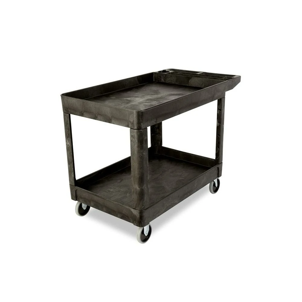El carro utilitario de alta resistencia con estante con reborde transporta materiales, suministros y cargas pesadas de forma segura con una capacidad de carga de hasta 226 kg (500 lb). Los estantes con reborde evitan que los artículos se caigan del carro e incorporan una ranura en V para sujetar firmemente las tuberías y conductos, lo que permite un corte seguro.