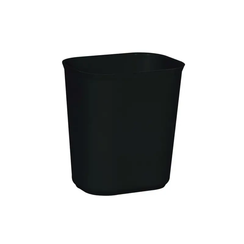 La papelera comercial ignífuga Rubbermaid presenta una forma contemporánea y cuenta con clasificación UL.
