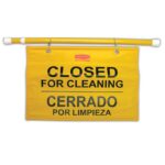 LETRERO COLGANTE CERRADO POR LIMPIEZA AMARILLO 9S16-00 RUBBE