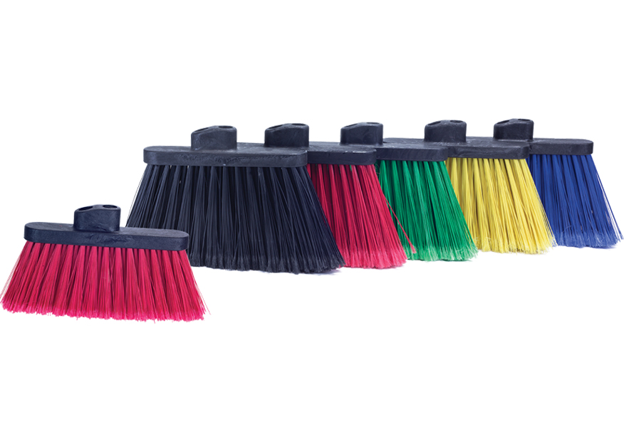 Línea de escobas con block de polipropileno estructural de gran resistencia con dos perforaciones roscadas de ¾” para su utilización en forma vertical o angular (mayor comodidad para el usuario). Compatible con todos los bastones con rosca de nuestra línea.