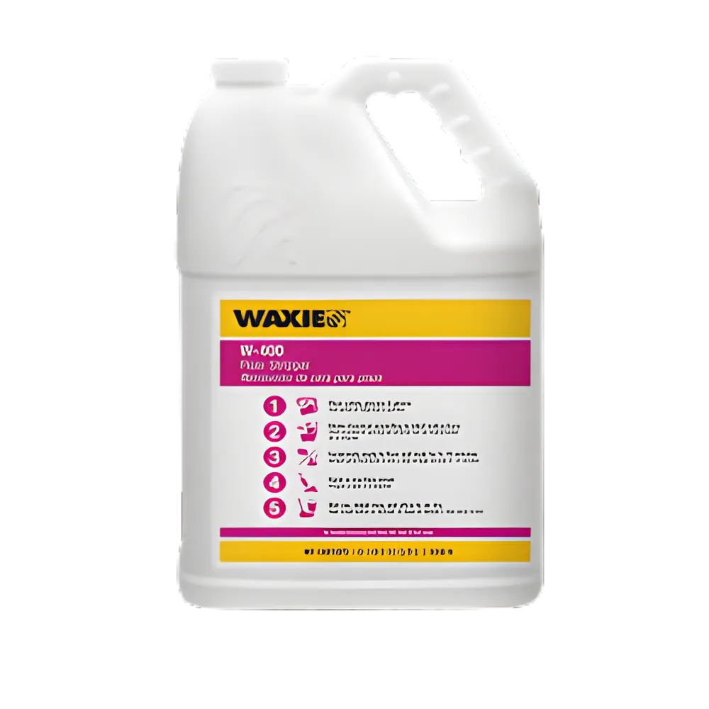 Decapante para pisos WAXIE W-400, 4 galones. Esta fórmula sintética, económica, potente y de baja espuma es el decapante más vendido de WAXIE. Su suave olor no altera el entorno de trabajo. Dilución: Normal 1:20, Dilución pesada 1:10, Dilución extrema 1:4. 15 litros por caja